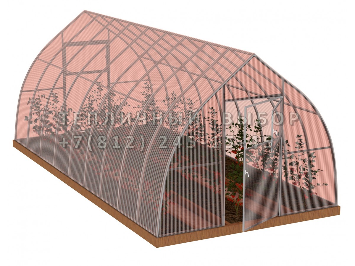 Теплица из поликарбоната-фито Усиленная Капелька 3х6 h=2.3 м профиль 25х25 мм