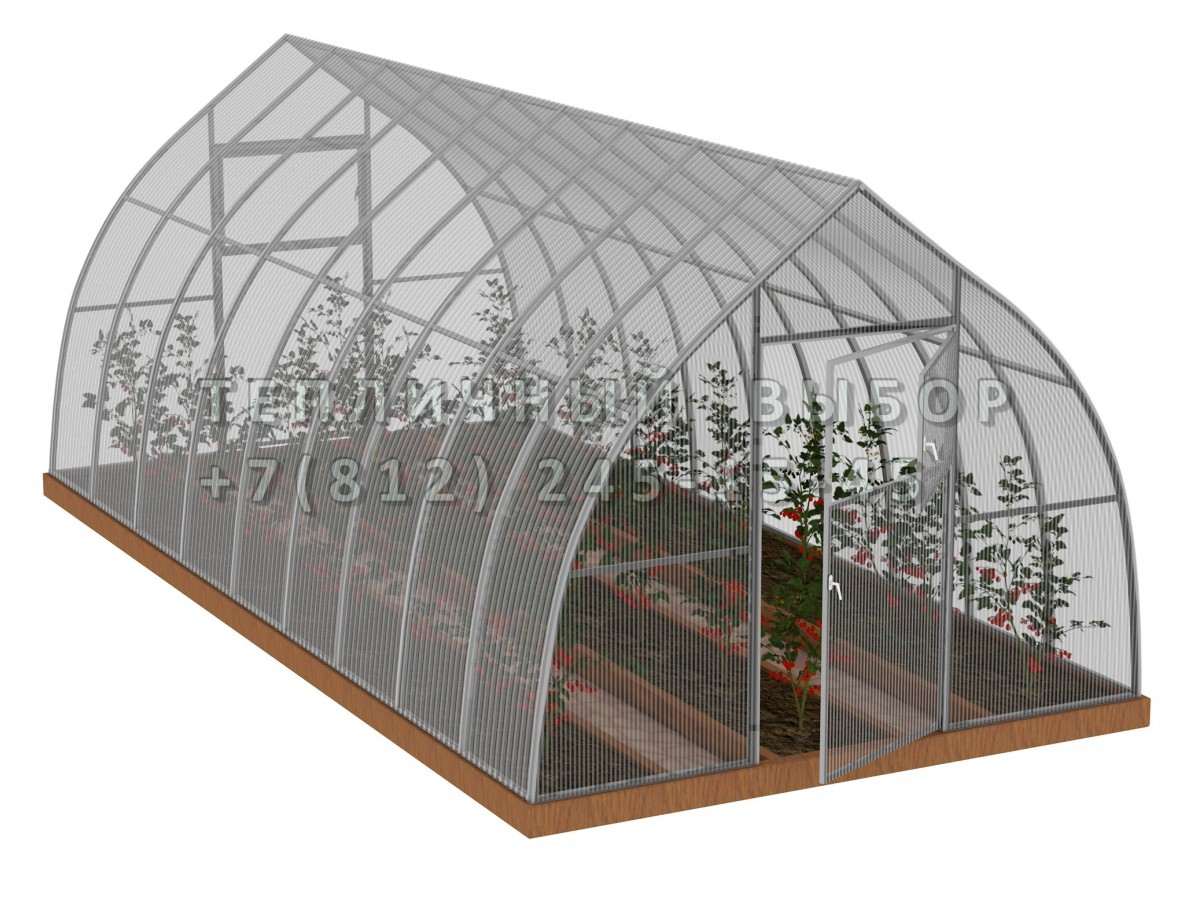 • прочная за счет частой установки дуг в теплице (междуговое расстояние 65 см) и оптимального сечения профильной трубы (25х25 мм)